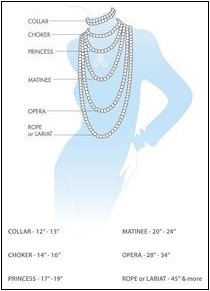Choker – 14-16-inch: Lies just below the neckline Made of single or multi-strands Perfect for any time of day and occasion Great for a child’s necklace.