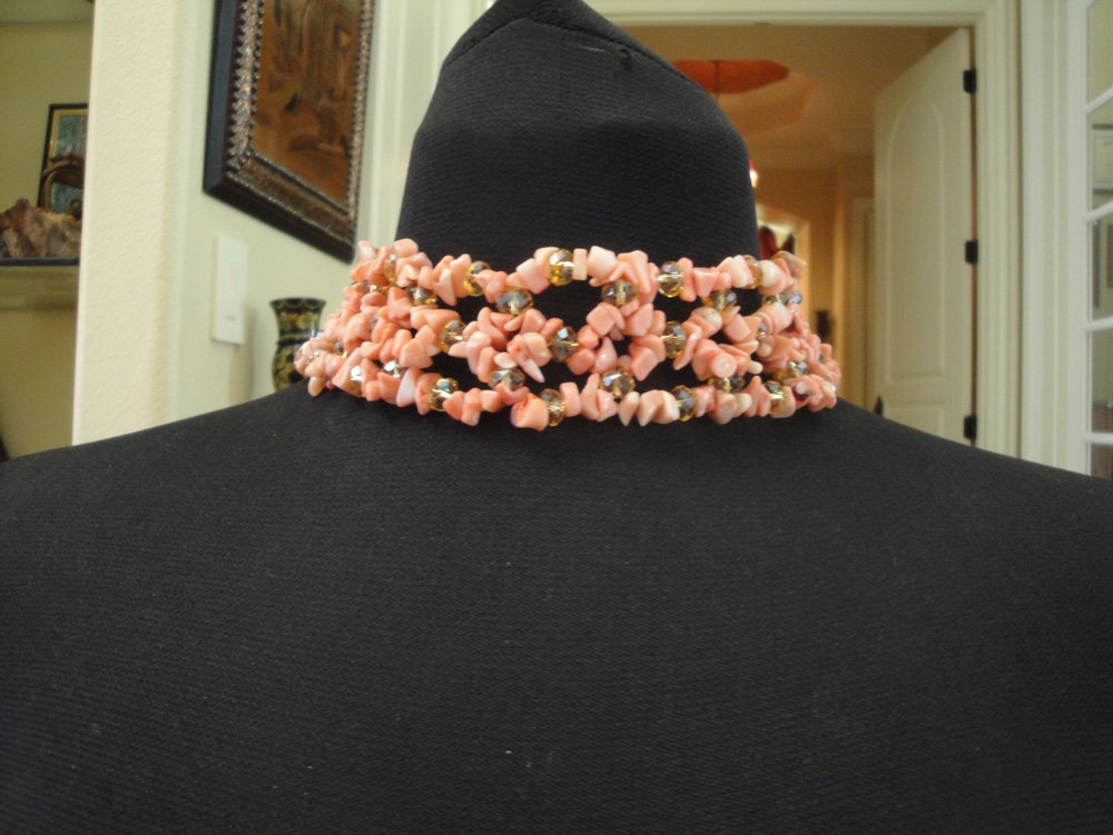 Straight Basket-Weave Coral and Crystal Choker Necklace – Peach
