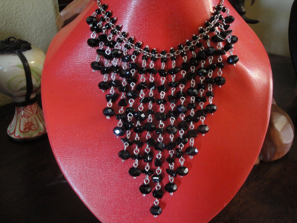 Black Onyx & Black Crystals, Triangle-Dangle on Stainless Steel Chain