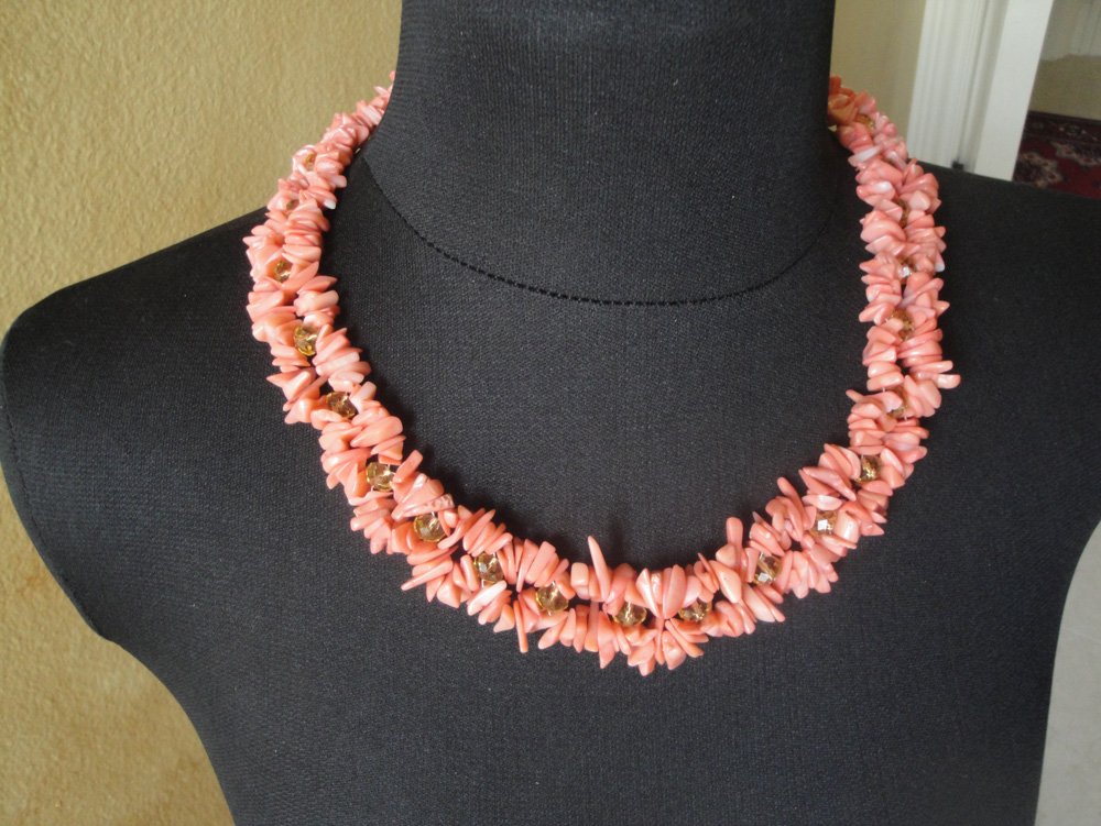 Chaka-Chaka Coral Weave Necklace with Crystal – Peach