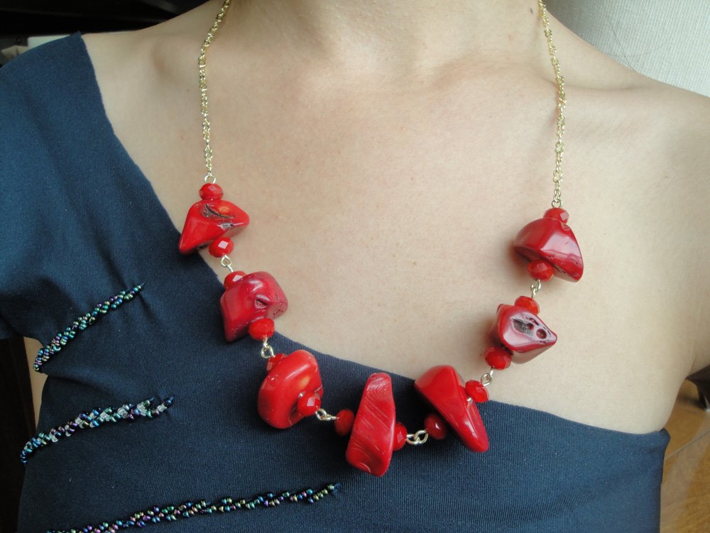 Chunky Tree-Trunk Red Coral Necklace – Gold-Plated (Medium)