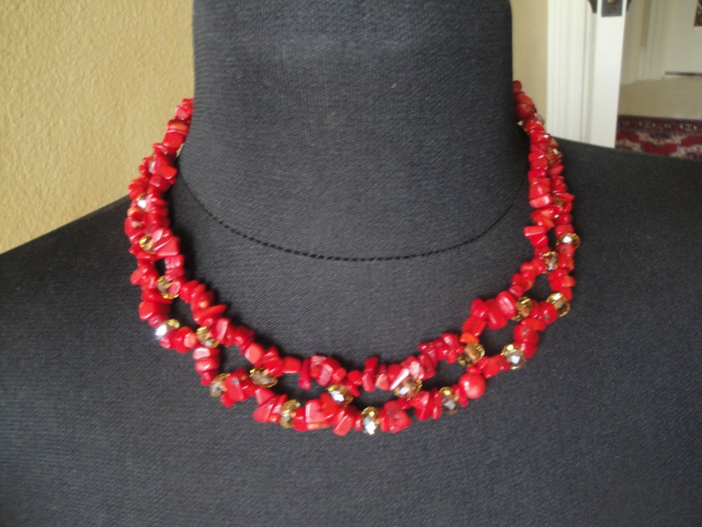 Coral & Crystal Weave Necklace – Red