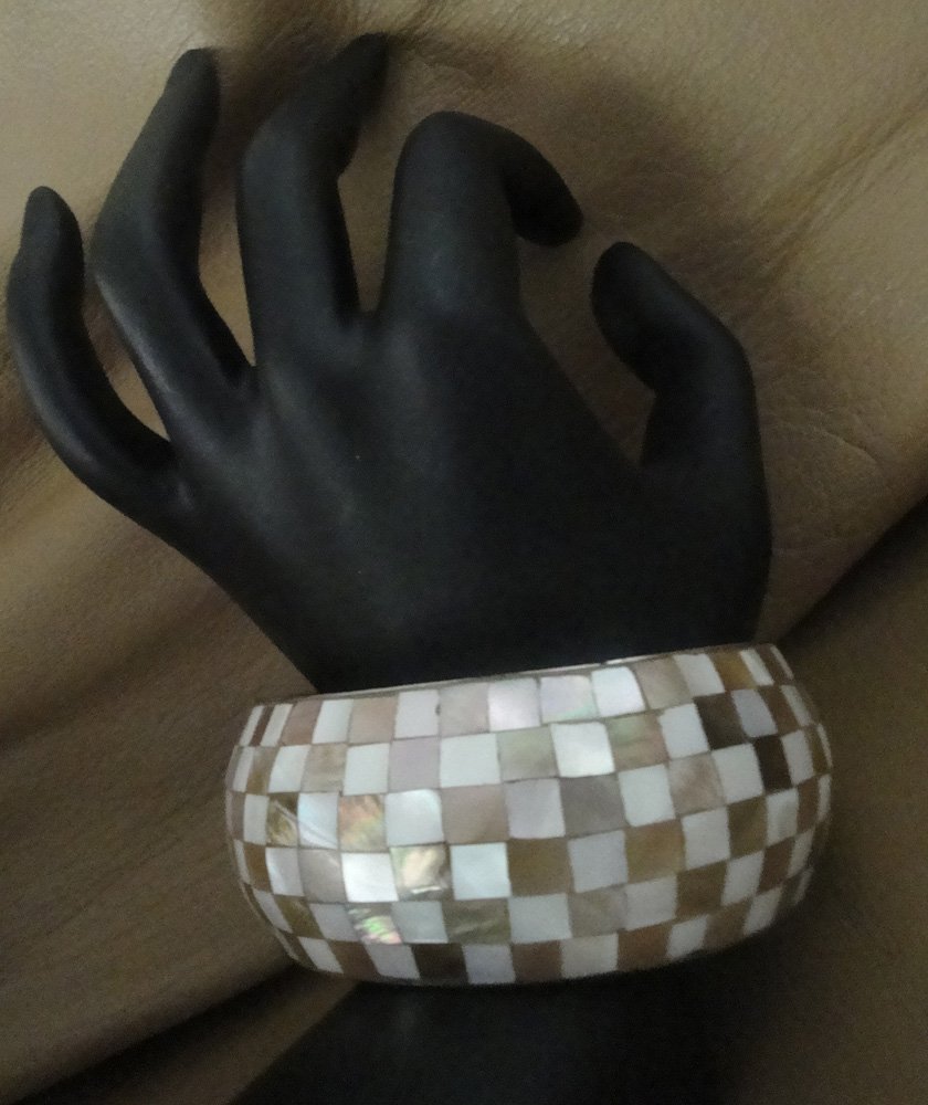 Mosaic, Mother of Pearl Bangle – Beige & White (Large)