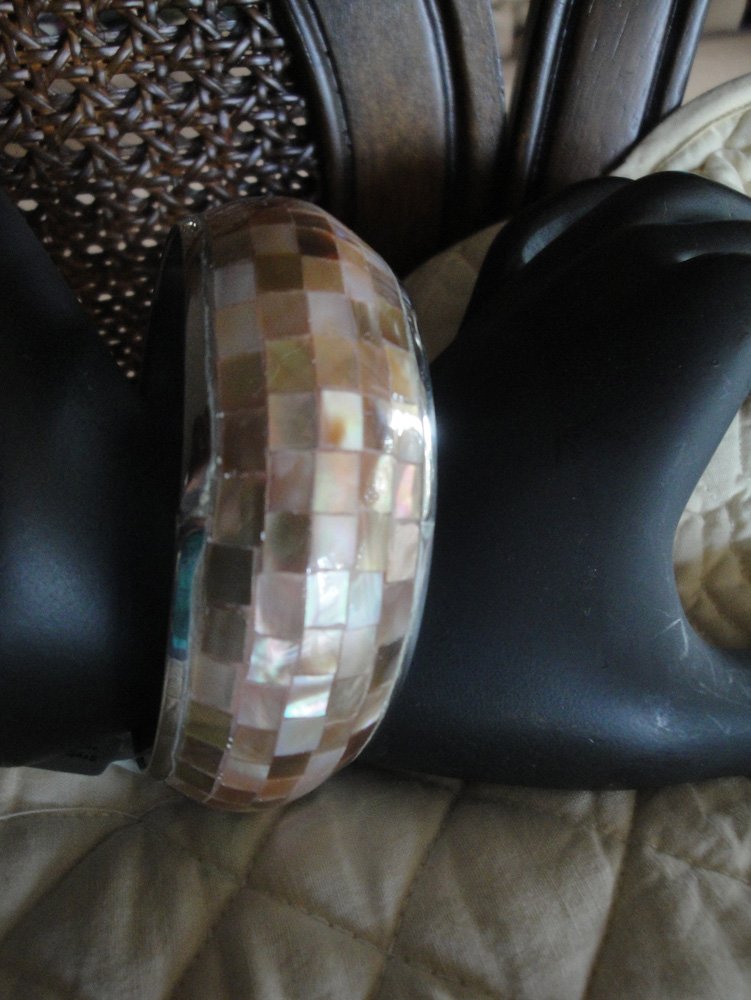 Mosaic, Mother of Pearl Bangle – Beige & White (Medium)