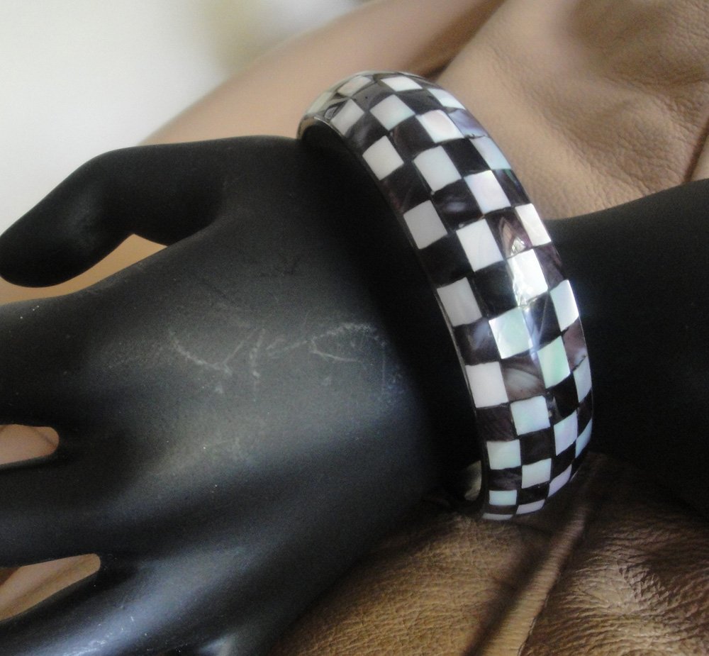 Mosaic, Mother of Pearl Bangle – Black and White Checkered (Small)