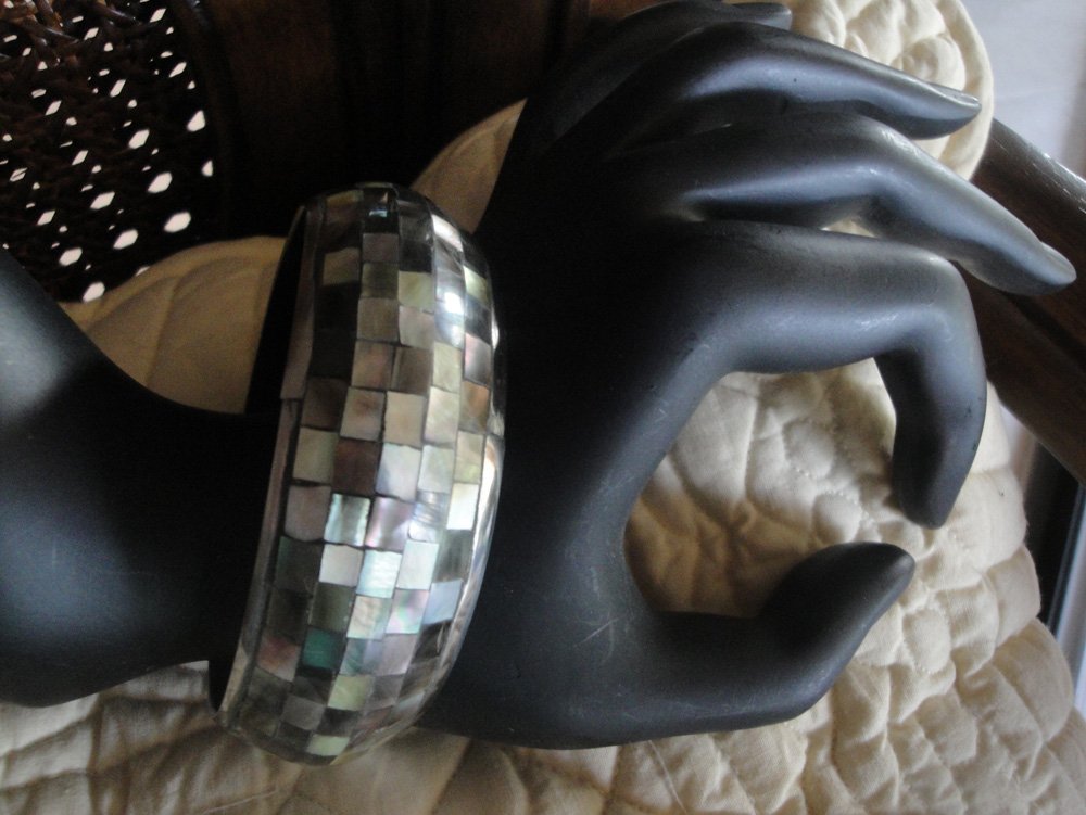 Mosaic, Mother of Pearl Bangle – Dark Gray (Medium)