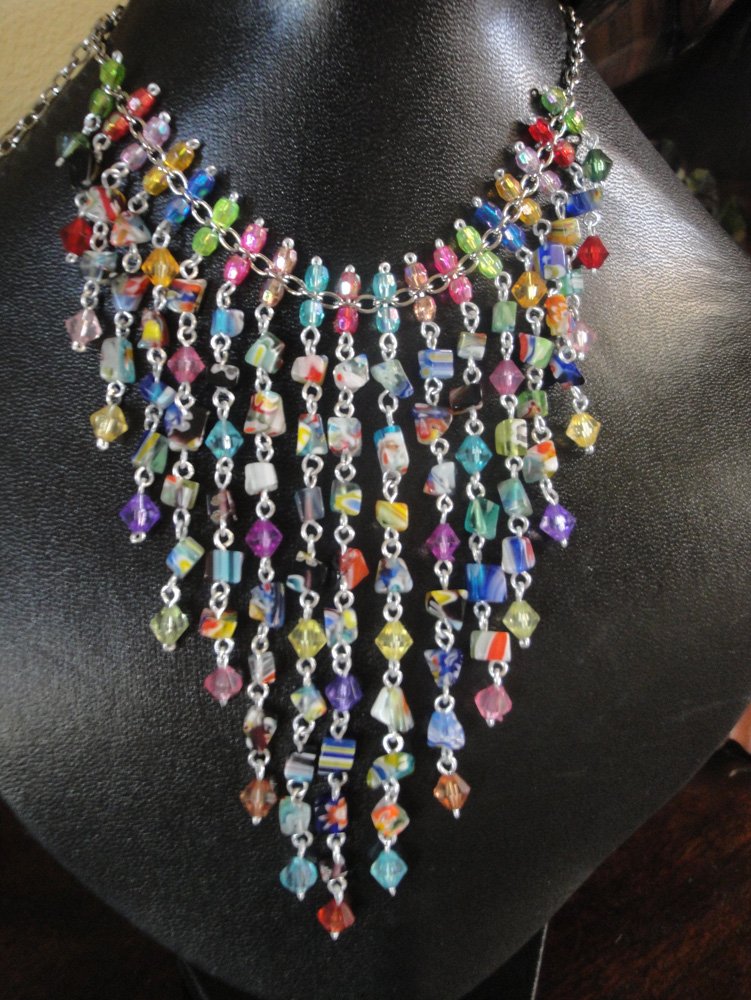 Multi-Color Murano Glass Triangle Dangle on Stainless Steel Chain