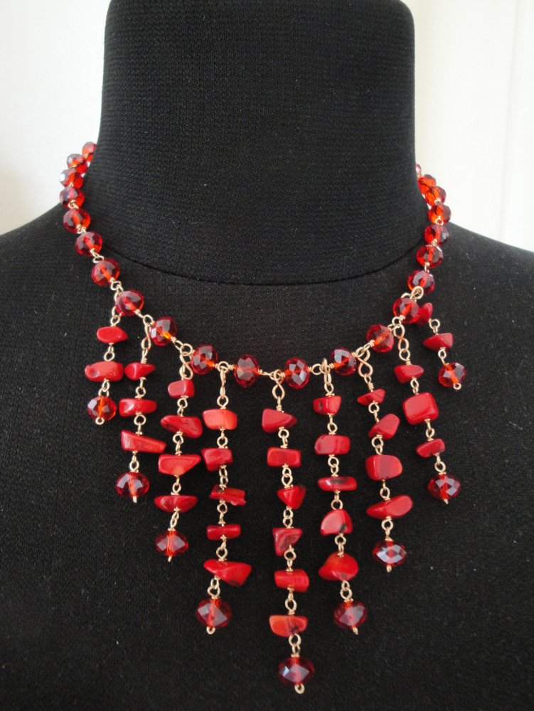 Red Coral Triangle-Dangle Necklace
