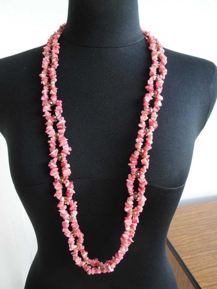 Wrap-Around Coral and Crystal Weave Necklace – Pink